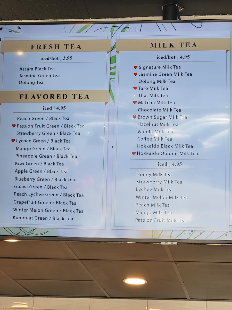Freshly brewed teas like Jasmine Green and Assam Black provide a familiar base, while lattes and flavored teas introduce subtle layers of sweetness and fruitiness. Drinks such as the coffee milk tea or the peach-lychee green tea offer a balance of lively flavors and soothing warmth, fitting well with the clean and welcoming atmosphere of the store.