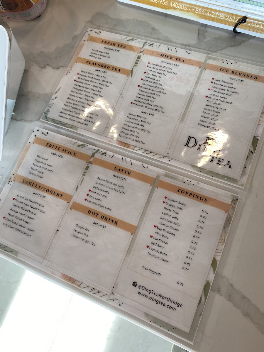 The menu at Ding Tea Northridge offers a simple yet satisfying selection focused on comforting drinks perfect for any time of day. Whether you’re stopping by for a refreshing iced peach slush during a warm afternoon or settling in with a smooth honey milk tea to unwind, the choices here reflect a casual, relaxed café vibe.